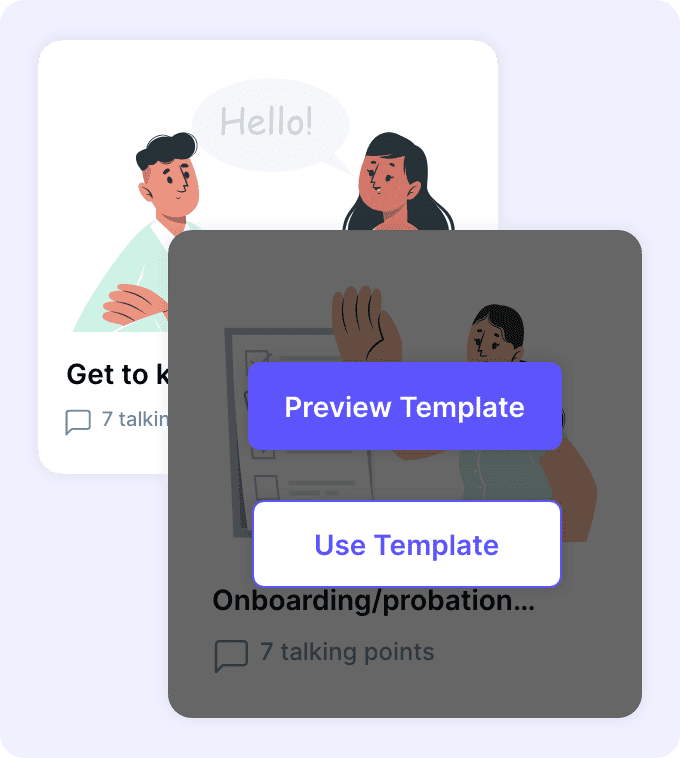 1-on-1s are an opportunity for employees to discuss any concerns, challenges, or ideas they may have with their manager. They can also be used to discuss progress on projects, set goals, and provide feedback. HuddleUp 1-on-1s comes with templates to help you conduct structured & meaningful 1-on-1.