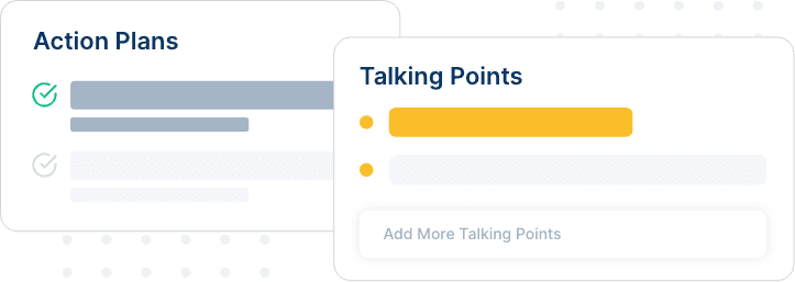 Hold impactful 1-on-1s with pre-set agenda, suggested talking points, centralised notes & trackable action items