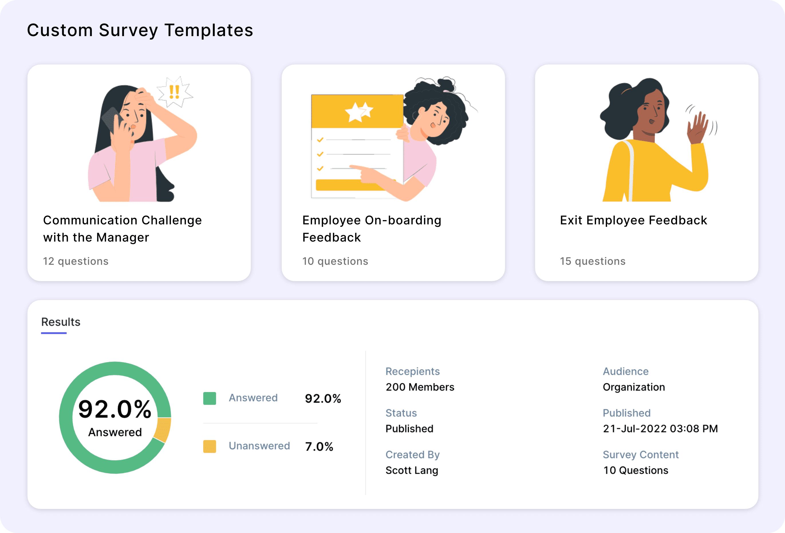 Get feedback on your custom areas to dig deeper on specific issues, or choose from dozens of expert-built templates